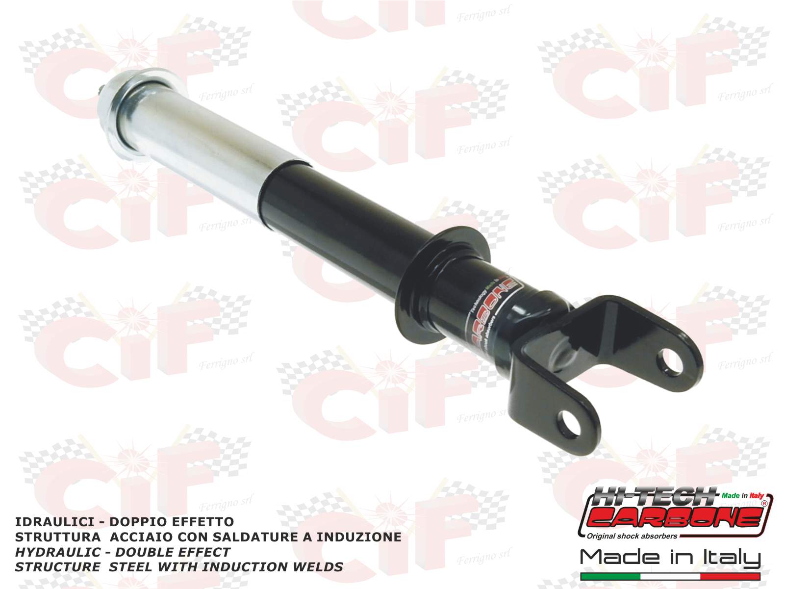 CARATTERISTICHE : IDRAULICO DOPPIO EFFETTO (FRENATO IN COMPRESSIONE ED IN ESTENSIONE) STRUTTURA DELL'AMMORTIZZATORE IN ACCIAIO CON SALDATURE AD INDUZIONE
